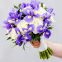 На фото букет невесты из белых роз и ирисов. В составе: ирис 17 шт, роза 12 шт, рускус 8 шт, атласная лента 1 шт, . Все цветы свежие и ароматные, букет красиво оформлен и отлично подходит для подарка. Доступна доставка цветов или самовывоз.